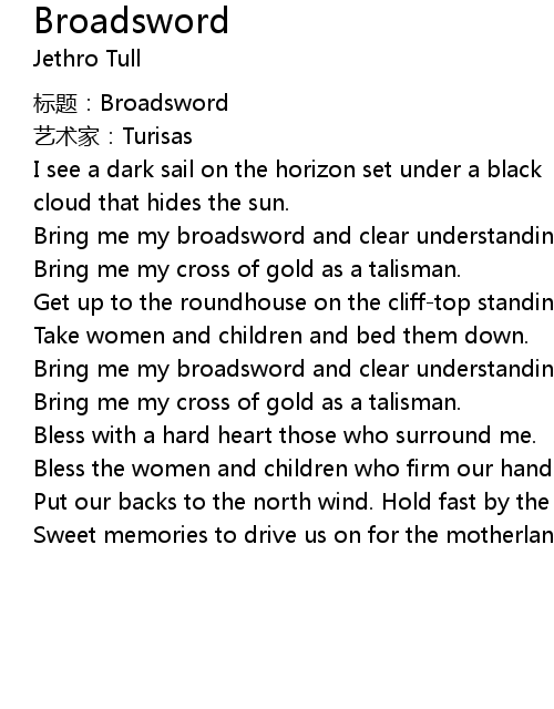| 歌曲 | Broadsword |