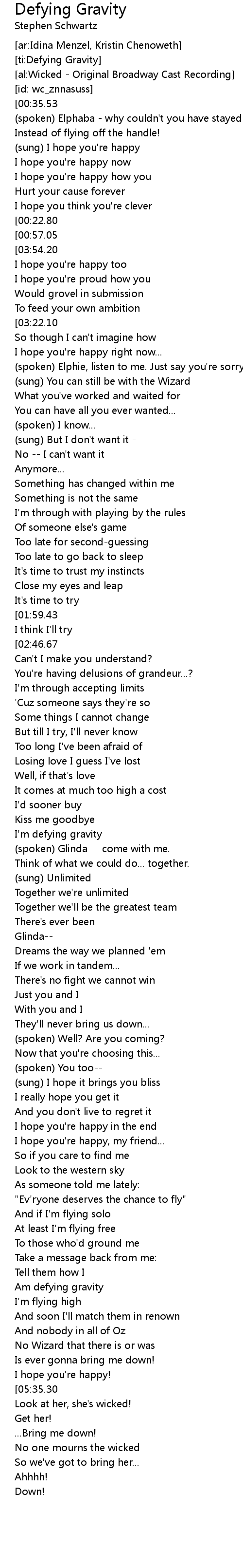(spoken) Elphaba - why couldn't you have stayed calm for once, |