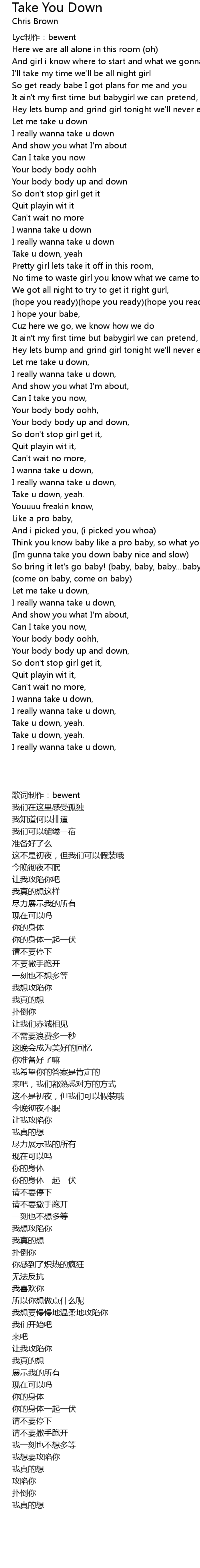 | [02:50.29] | Im gunna take you down baby nice and slow |