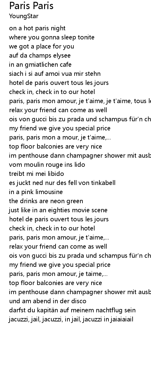 | paris, paris mon amour, je t' aime, je t' aime, tous les jours | |