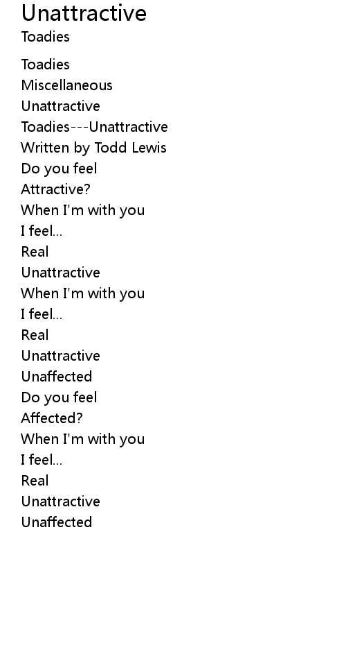 | Toadies---Unattractive | |