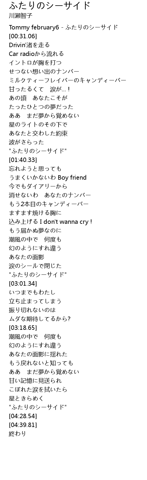 | [00:00.00] | Tommy february6 - ふたりのシーサイド |