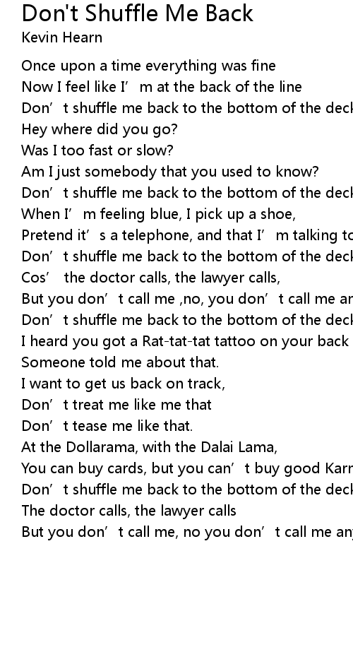 | Don' t shuffle me back to the bottom of the deck | |