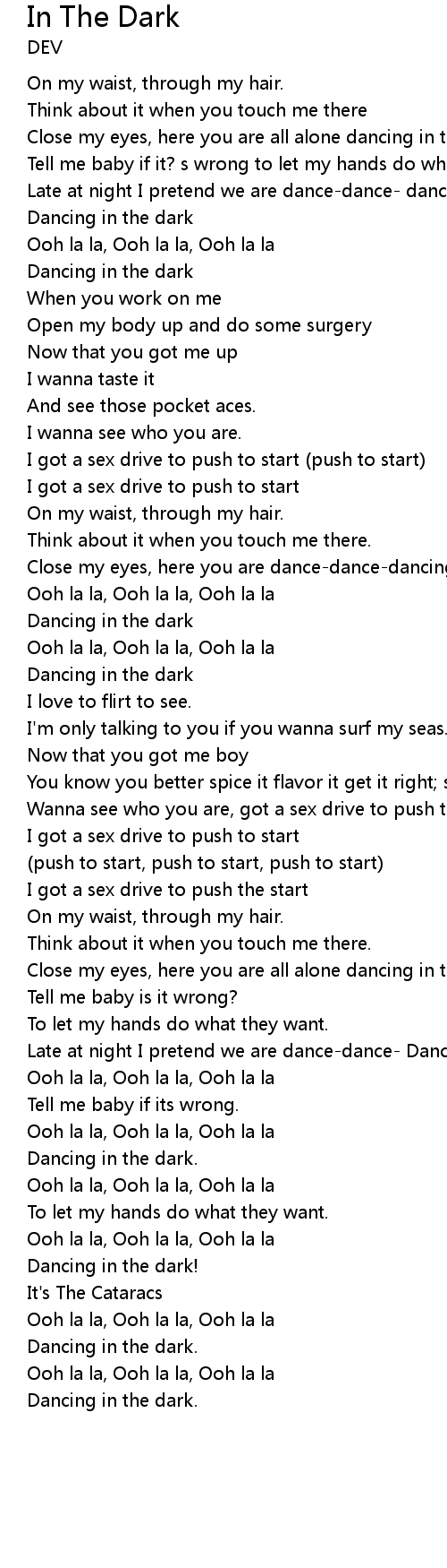 Late at night I pretend we are dance-dance- dancing in the dark |