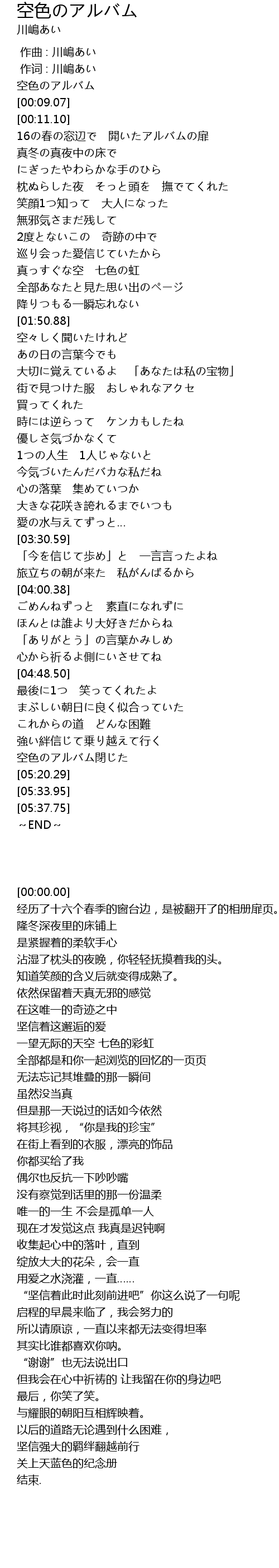 | [00:00.00] | 空色のアルバム |