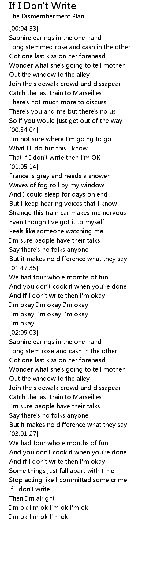 And if I don't write then I'm okay |