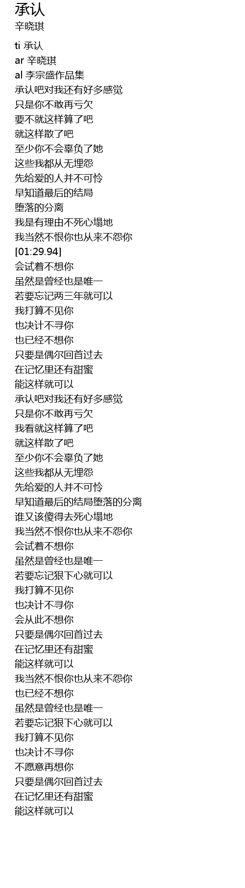 | [02:26.49] | 承认吧对我还有好多感觉 |