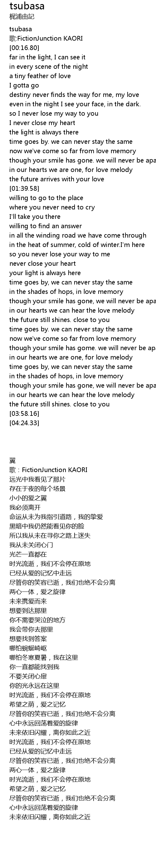 | [00:14.12] | 歌:FictionJunction KAORI |