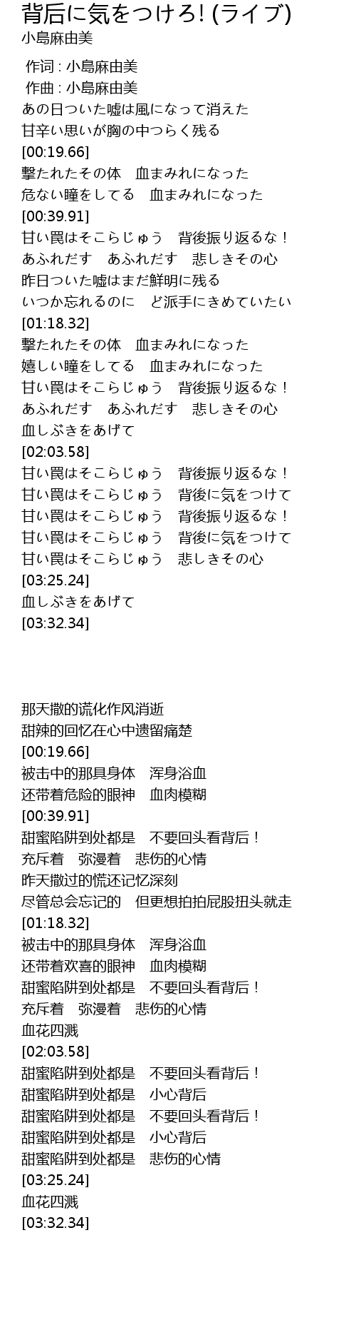| [02:58.17] | 甜蜜陷阱到处都是 不要回头看背后! |