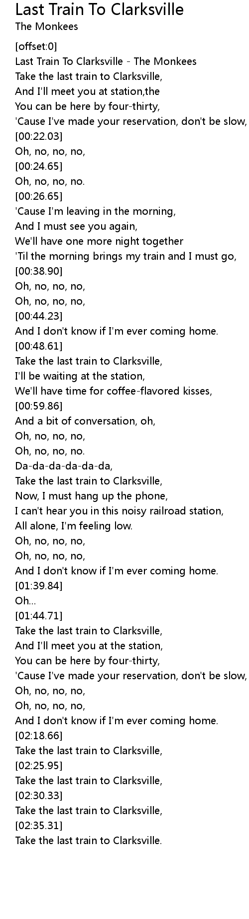 Take the last train to Clarksville, |