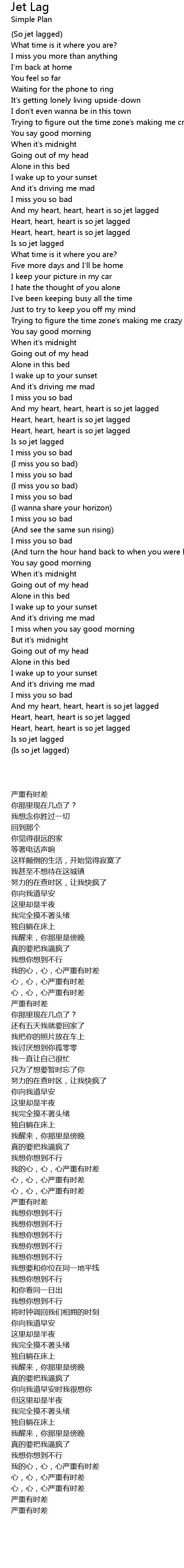 And my heart, heart, heart is so jet lagged |
