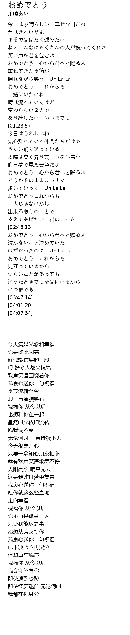 | [02:28.75] | おめでとうこれからも |