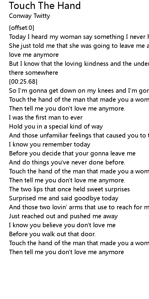 Touch the hand of the man that made you a woman |