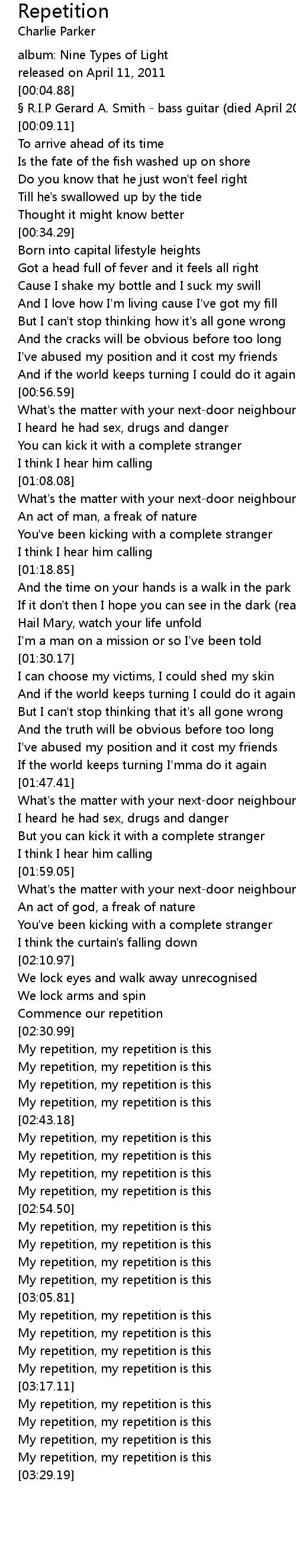 | [01:08.88] | What's the matter with your next-door neighbour |