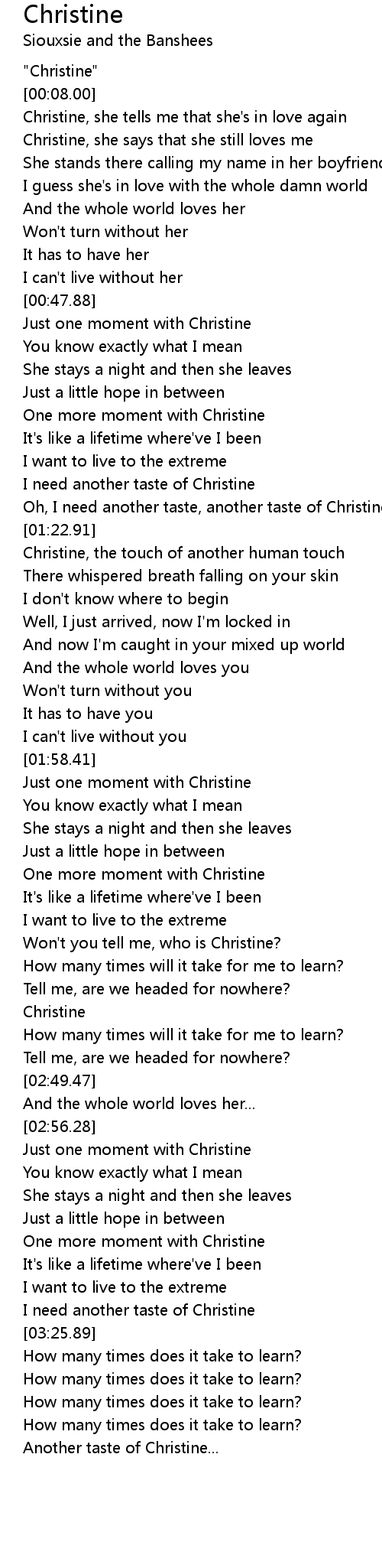 Won't you tell me, who is Christine? |