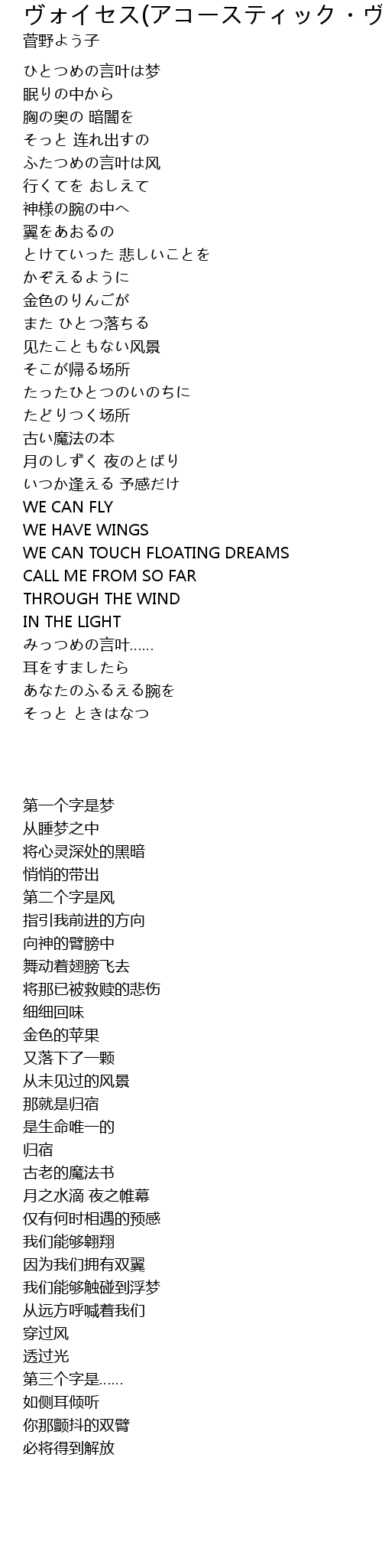 | [00:33.74] | ふたつめの言叶は风 |