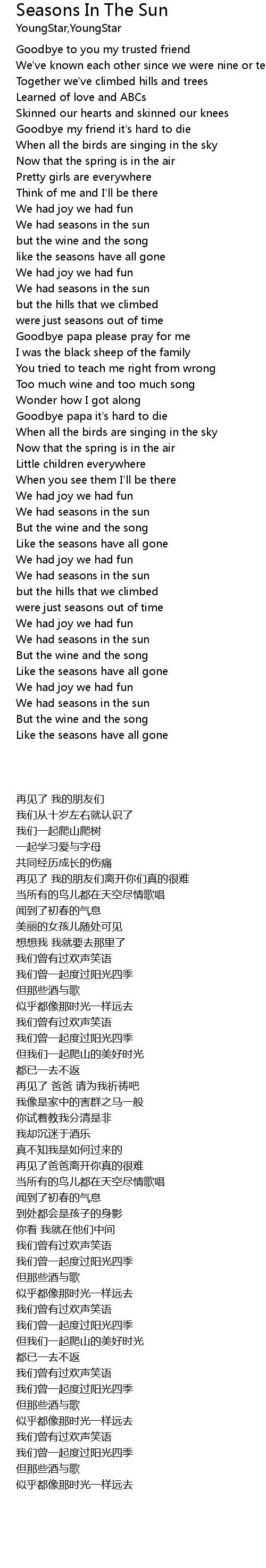 We had seasons in the sun |