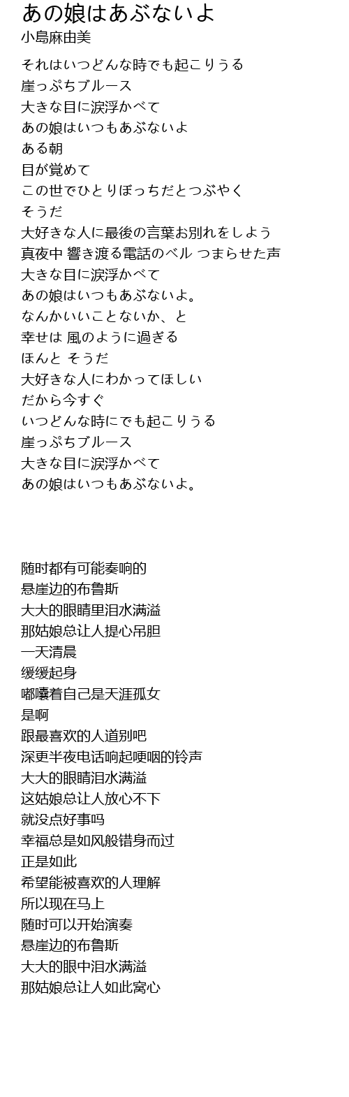 | [01:45.15] | あの娘はいつもあぶないよ。 |