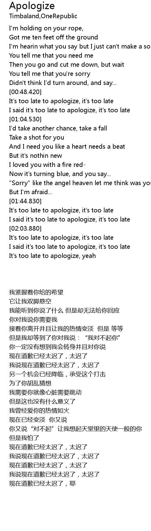 It's too late to apologize, it's too late |