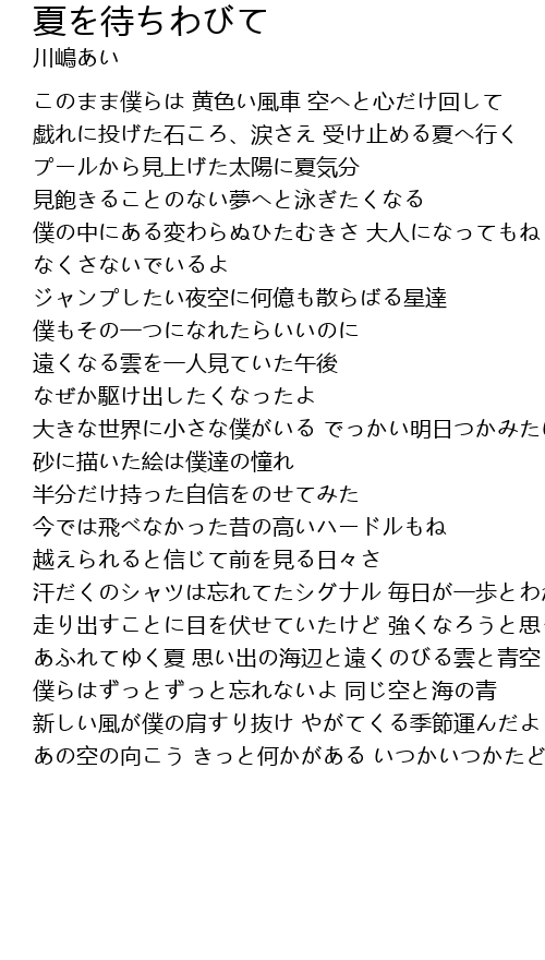 | 歌曲 | 夏を待ちわびて |