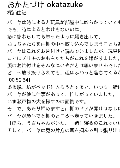 | [00:41.59] | 兎はお片付けをそんなにいやだとは思いませんでした。 |