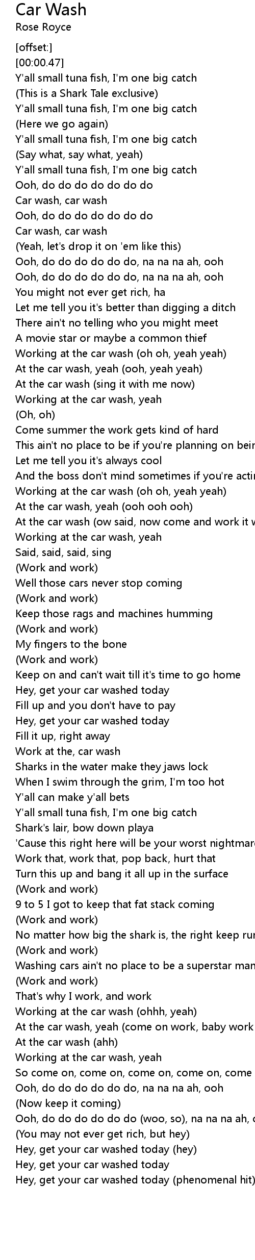 [00:18.86] Car wash, car wash