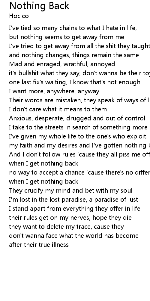 my faith and my desires and I've gotten nothing back |