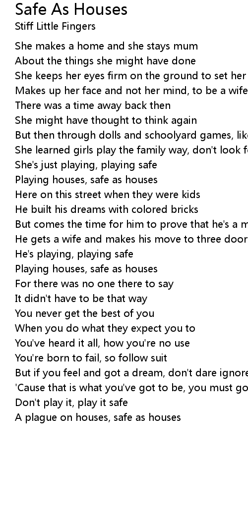 Playing houses, safe as houses |
