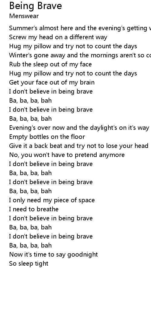 | I don't believe in being brave | |