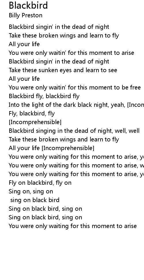 Fly on blackbird, fly on |