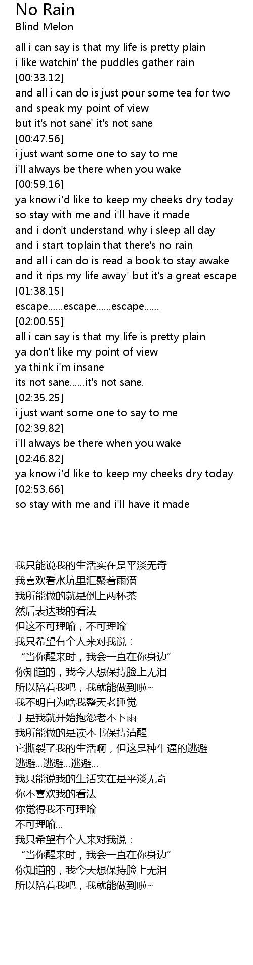 and i start toplain that there's no rain |