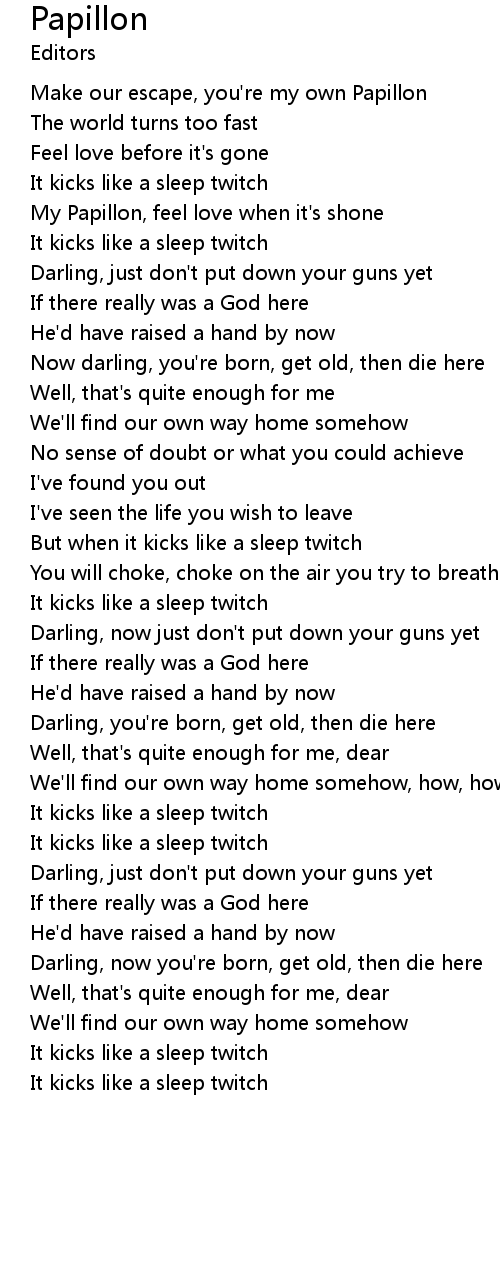 | Make our escape, you're my own Papillon | |
