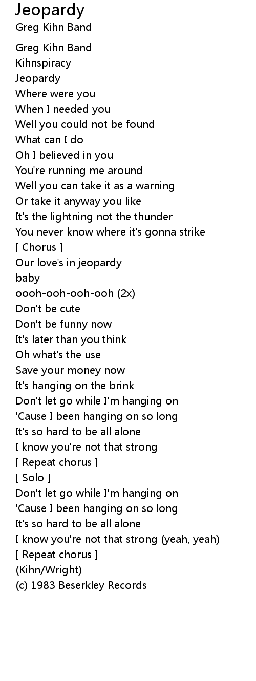 Our love's in jeopardy |
