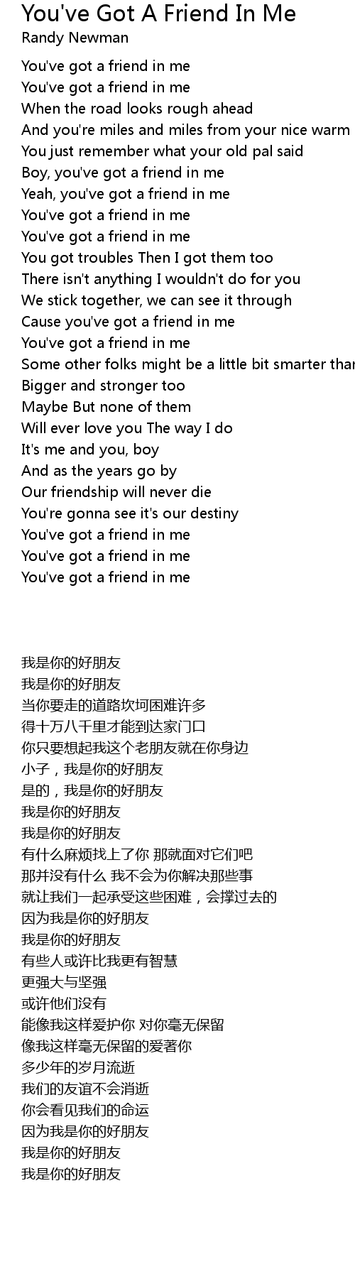 Yeah, you've got a friend in me |