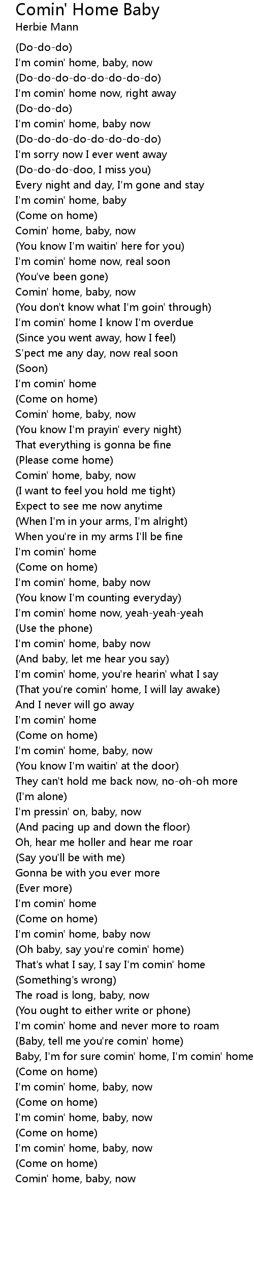Comin' home, baby, now |