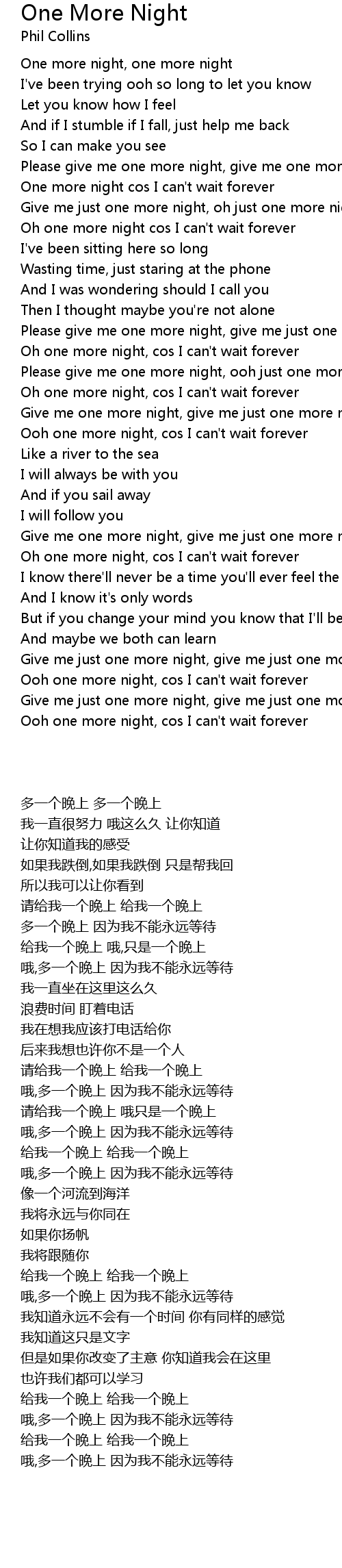 One more night, one more night |