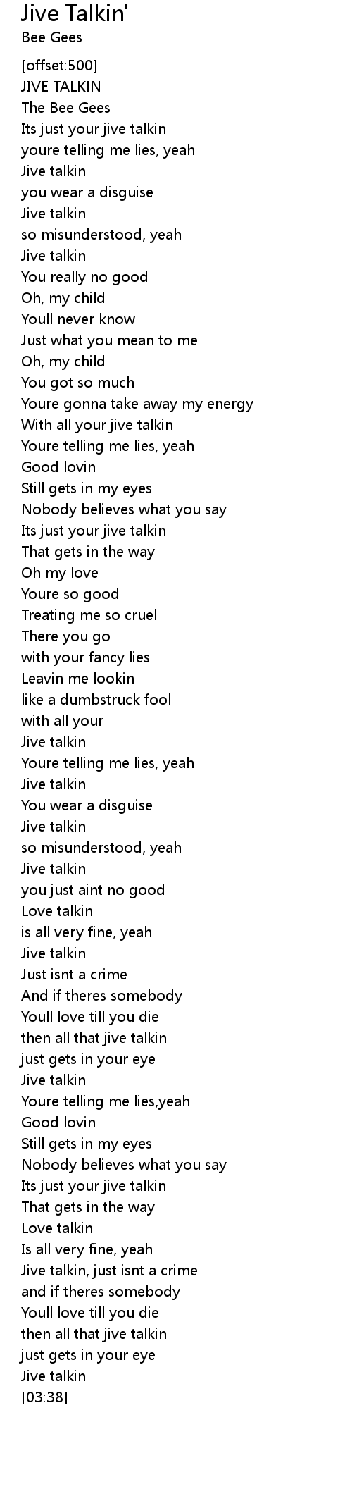 With all your jive talkin |
