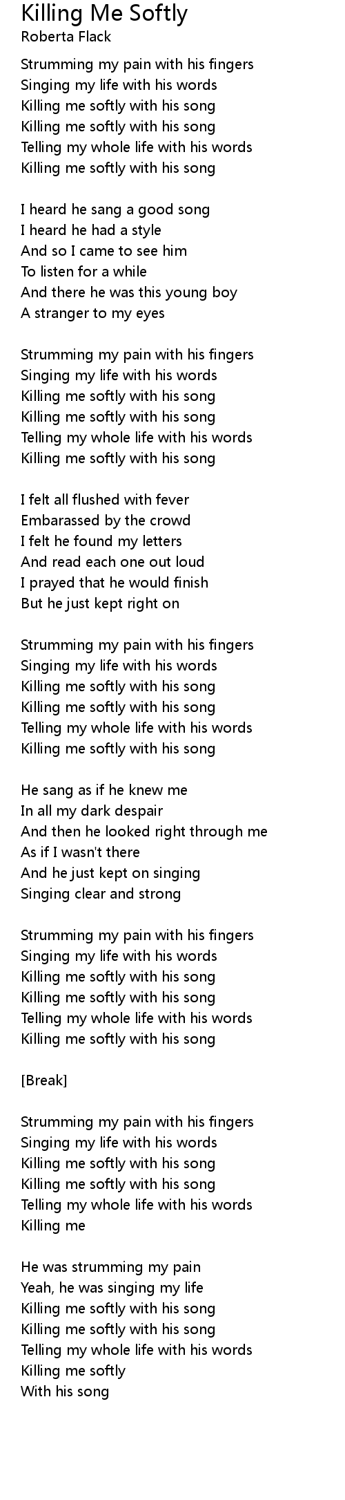 Killing me softly with his song |