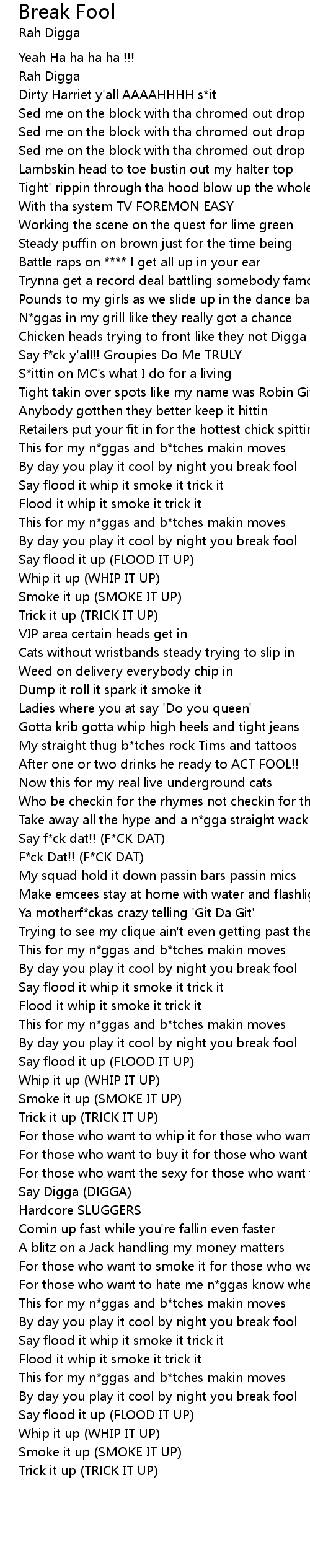 | [02:07.10] | Say flood it whip it smoke it trick it |