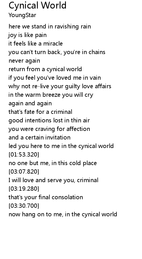| [00:42.200] | return from a cynical world |