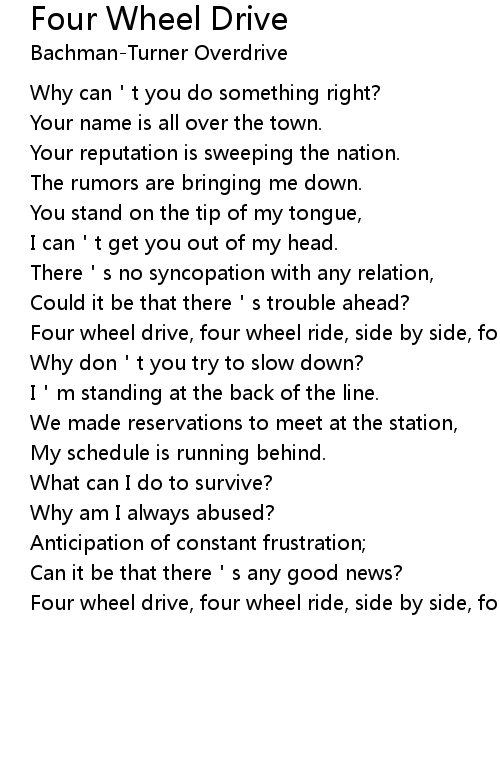 | Four wheel drive, four wheel ride, side by side, four wheel drive. |