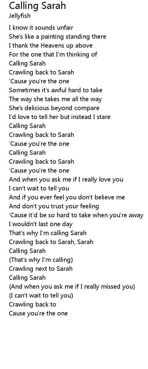 | Crawling back to Sarah, Sarah | |