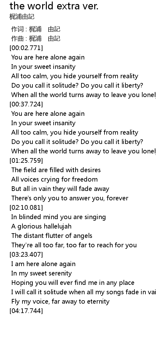 | [04:03.237] | I will call it solitude when all my songs fade in vain |