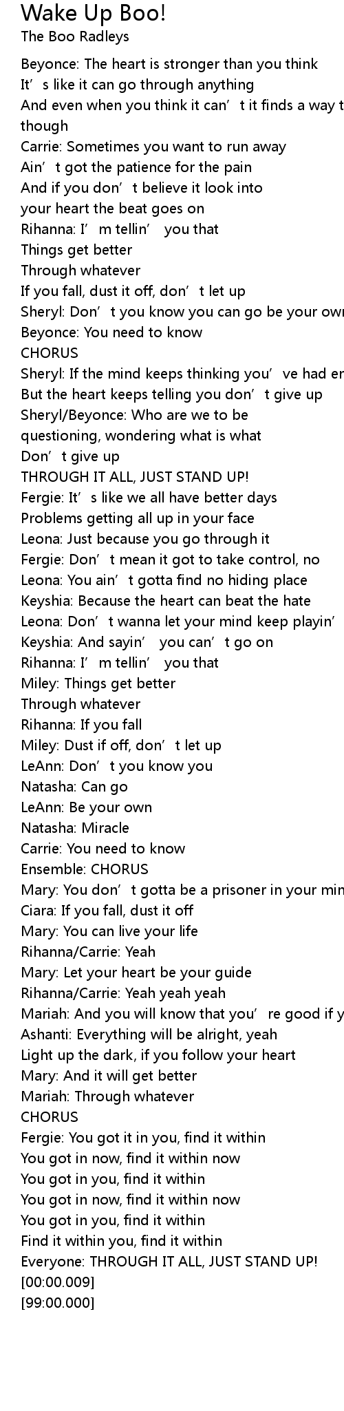 | [00:03.95] | Beyonce: The heart is stronger than you think |