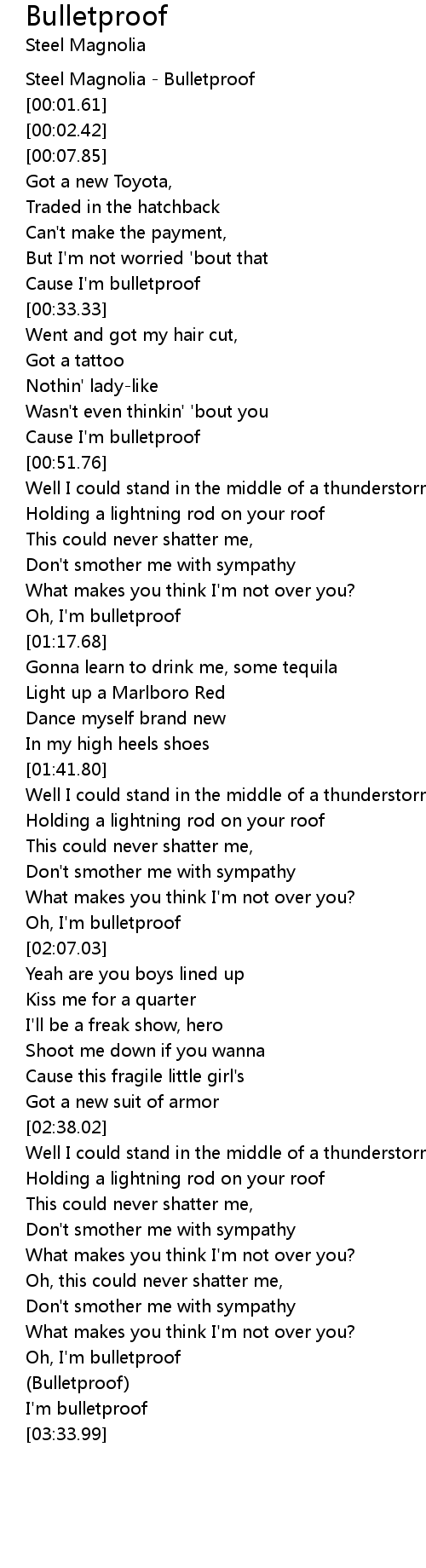 Cause I'm bulletproof |