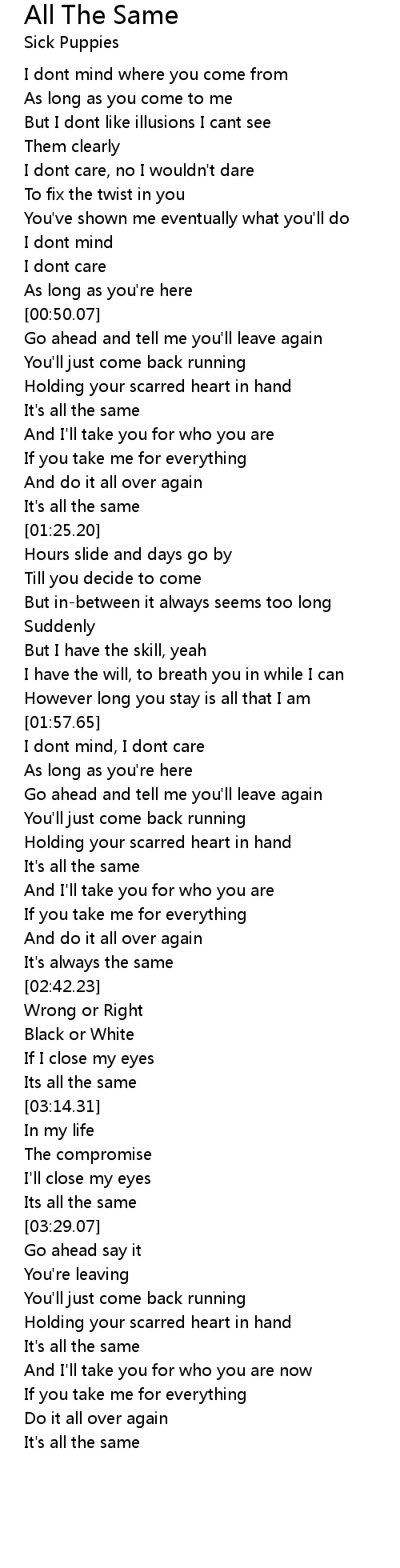 However long you stay is all that I am |