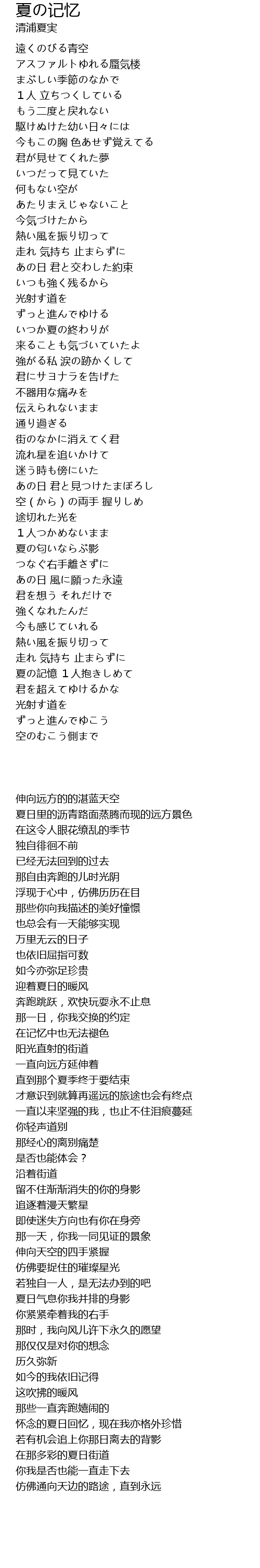 夏の記憶 1人抱きしめて |
