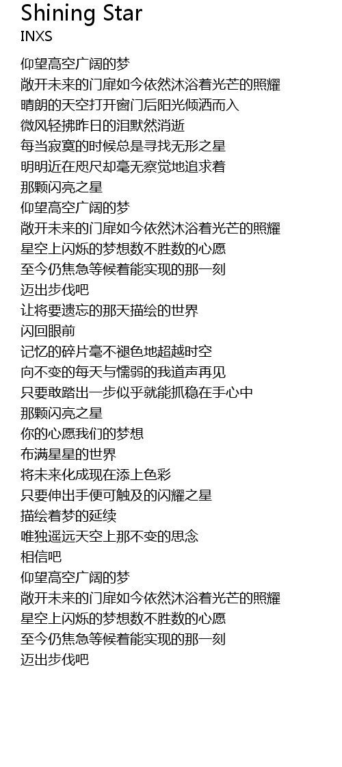 | [02:15.92] | zhǐ yào shēn chū shǒu biàn kě chù jí de shǎn yào zhī xīng |