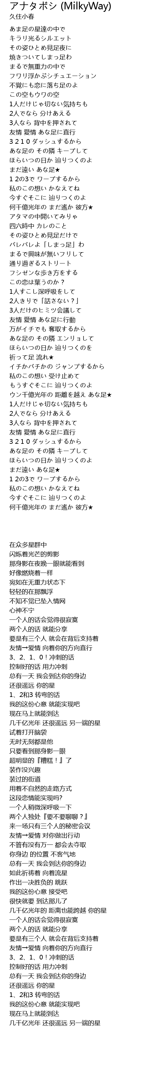 | [00:22.38] | あま足の星達の中で |