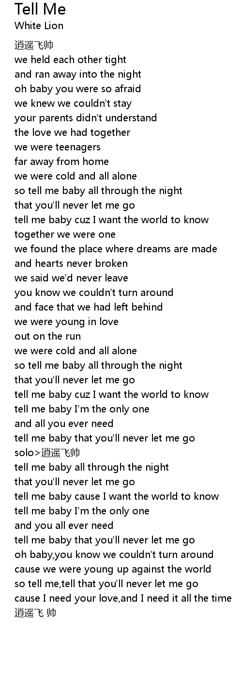 | [04:06.884] | so tell me,tell that you'll never let me go |